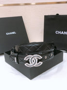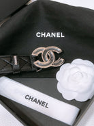 CHANEL BELT 3CM IN BLACK EMBROIDERED LAMBSKIN SILVER HARDWARE