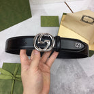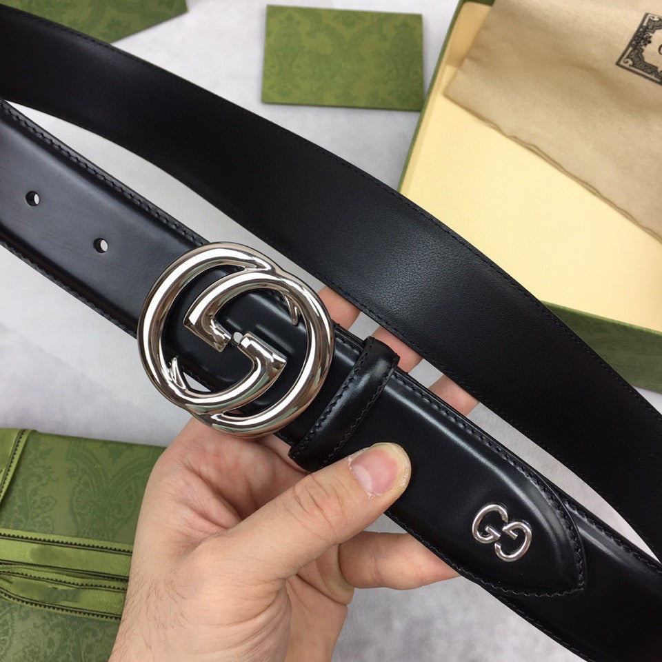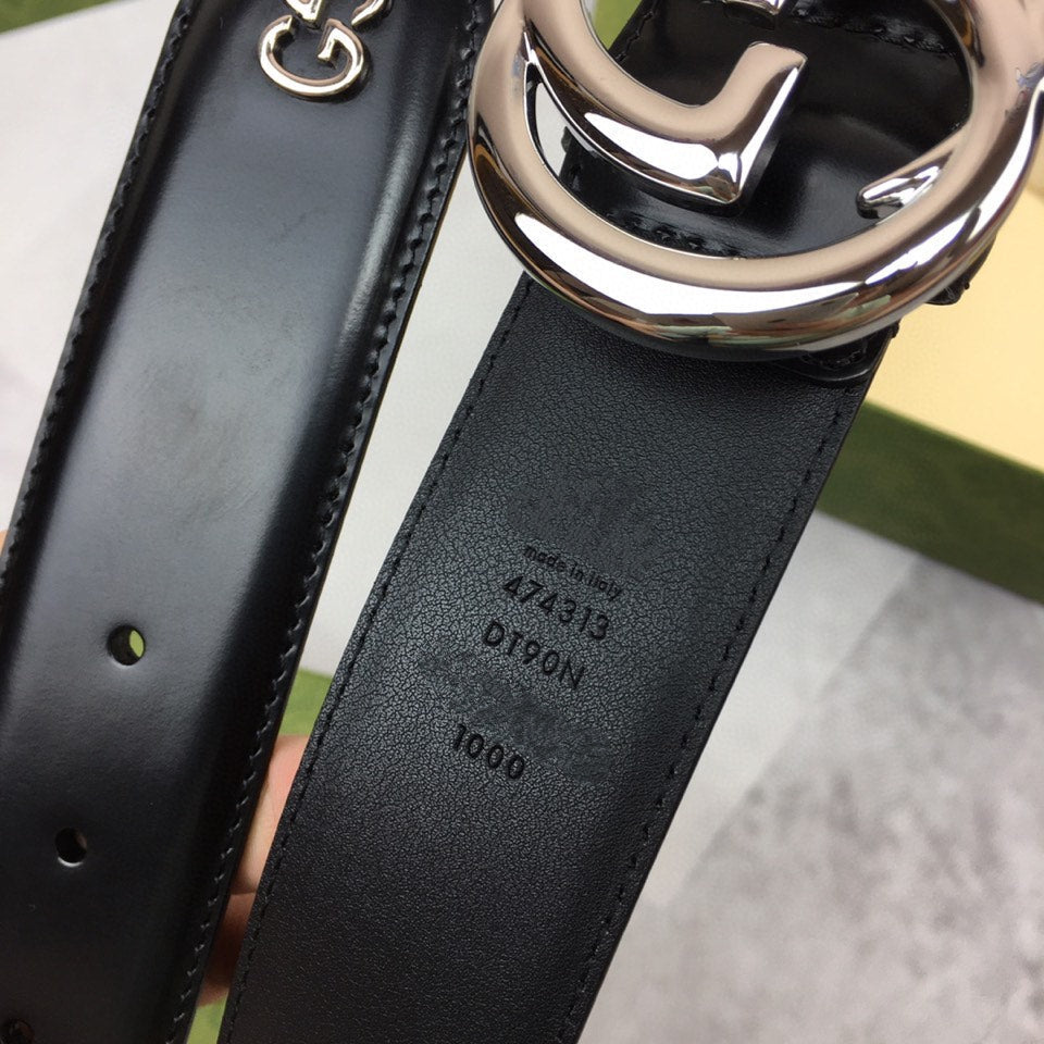 GC BELT SILVER BUCKLE BACK LEATHER 4.0CM