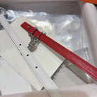 H SILVER BUCKLE WOMEN'S BELT WHITE RED LEATHER STRAP 1.3CM