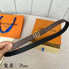 LV CIRCLE 25MM REVERSIBLE BELT IN BROWN DAMIER CALFSKIN GOLD HARDWARE