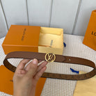 LV CIRCLE 25MM REVERSIBLE BELT MEDIUM BROWN MONOGRAM CALFSKIN GOLD HARDWARE