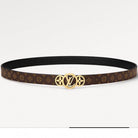 LV S-LOCK BELT 20 MM TAUPE BROWN MONOGRAM AND BLACK CALFSKIN GOLD HARDWARE