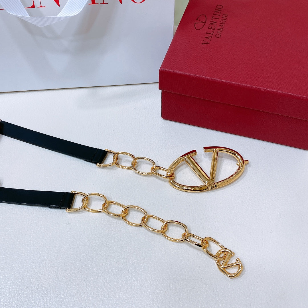 VLOGO SIGNATURE SHINY COWHIDE BELT WITH CHAIN