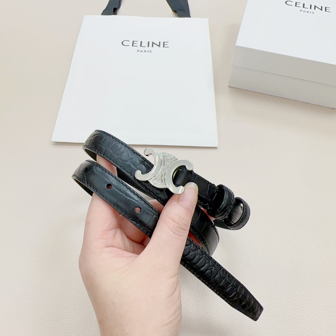 CEL Silver Buckle 13mm Belt Black Cowhide 179726