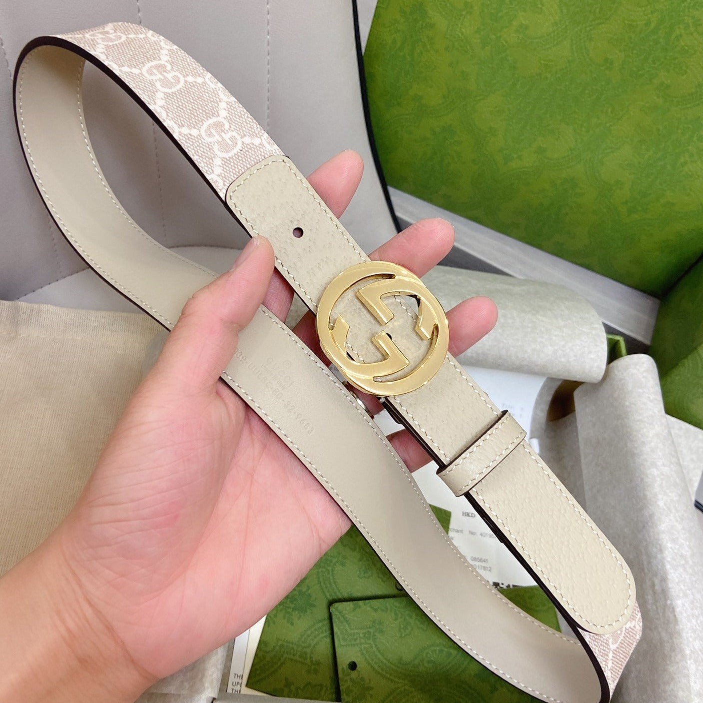 GC BELT GOLD BUCKLE IN GG SINK LEATHER 4.0CM