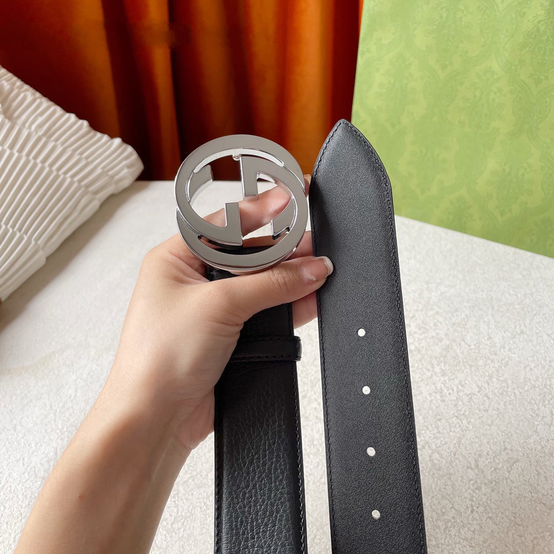 GC BELT SILVER BUCKLE BACK LEATHER 4.0CM