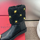 ANKLE STUDDED BOOTS IN BLACK CALFSKIN AND SHEARLING LINING