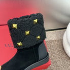 ANKLE STUDDED BOOTS IN BLACK SUEDE AND SHEARLING LINING