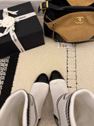 CC 2025 Chunky Heel Sock Boot White Leather Knit 548118