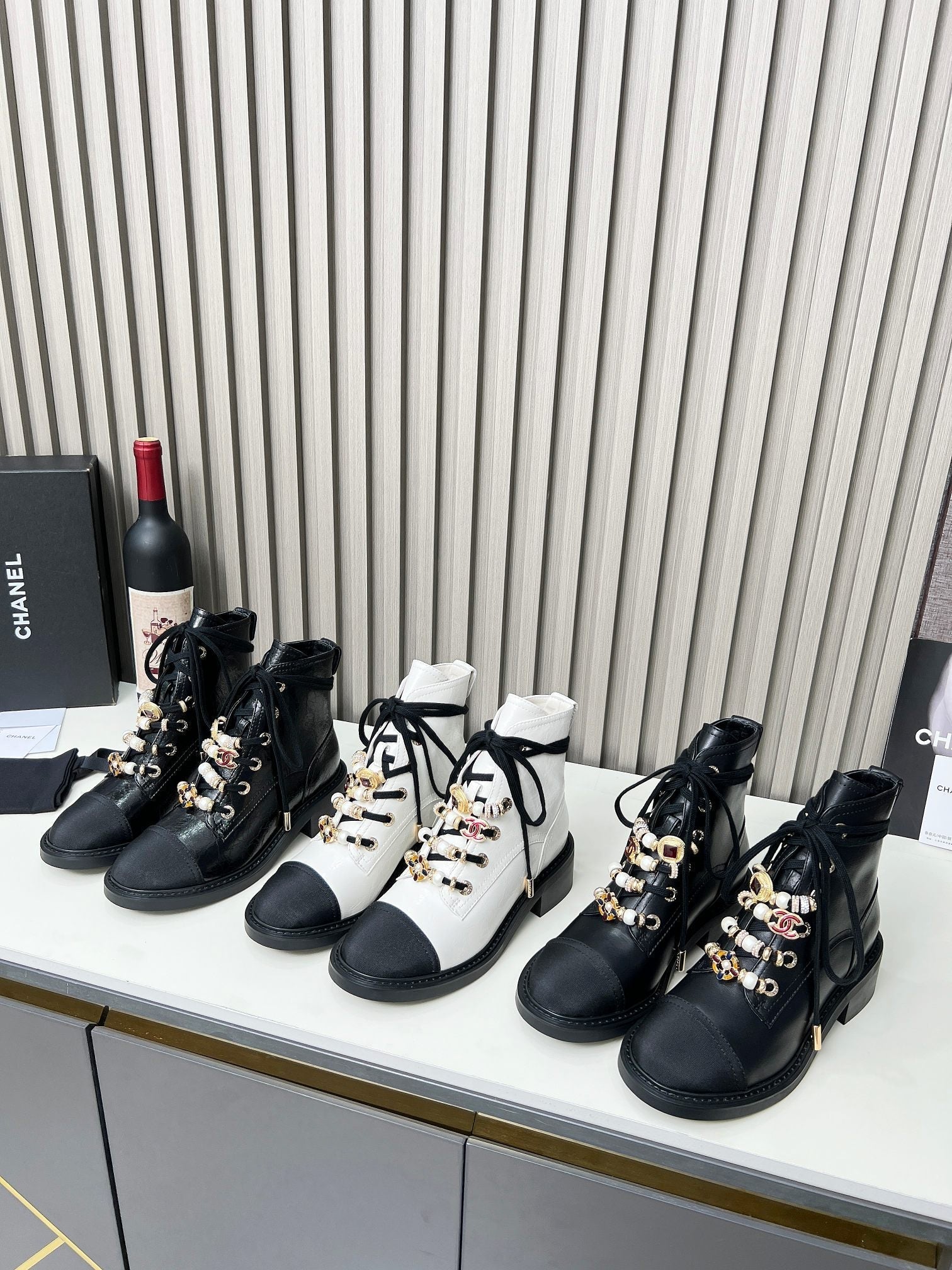 CC Combat Boots 50mm Black Glossy Calfskin And Lycra Fabric 944549
