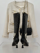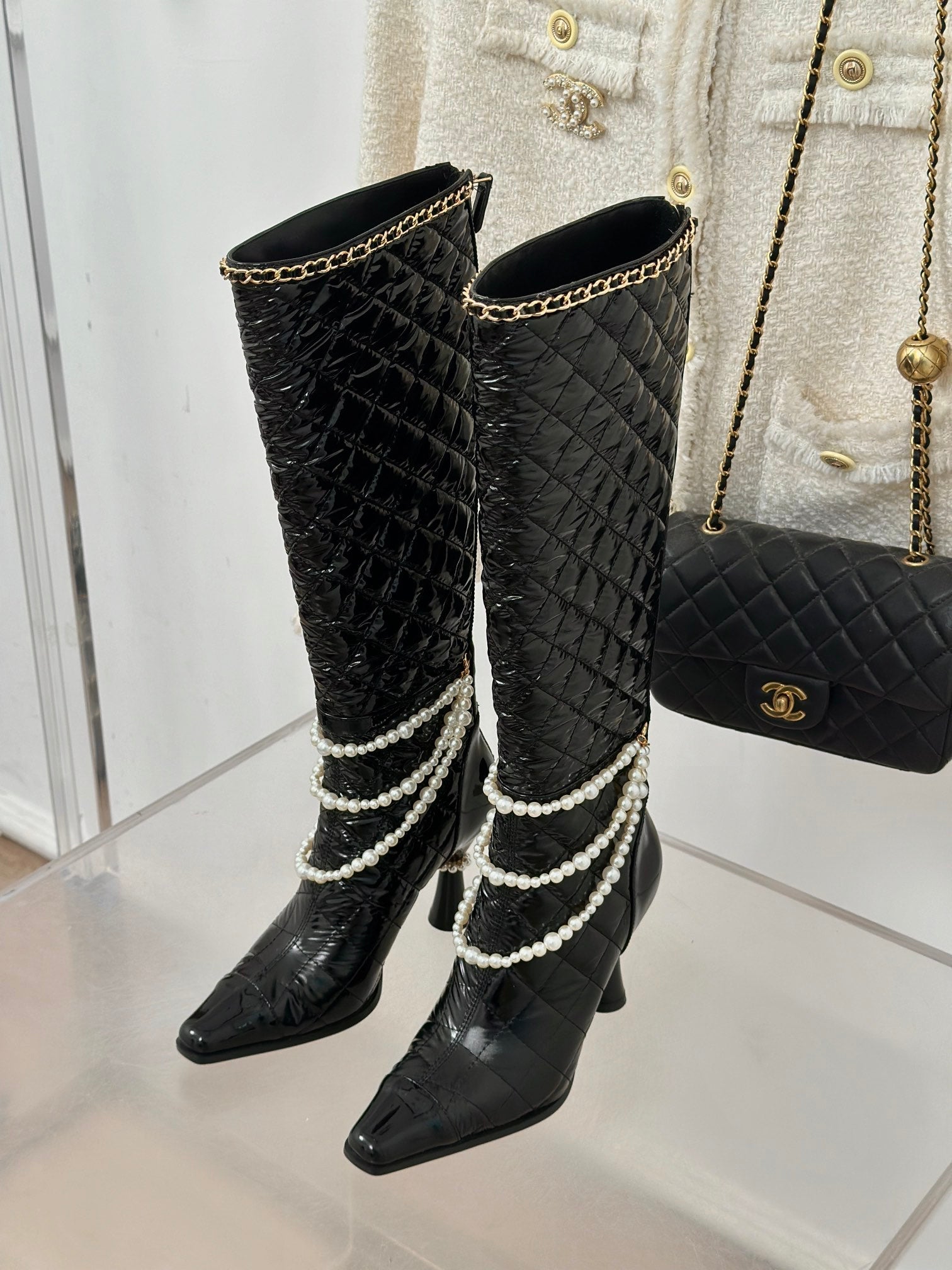 CC High Boots 80mm Glossy Black Wrinkled Quilted Calfskin