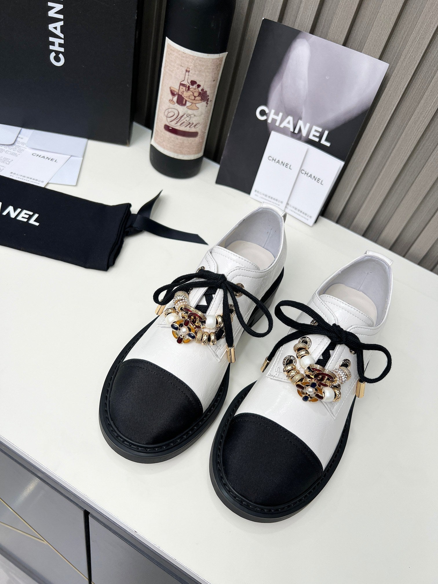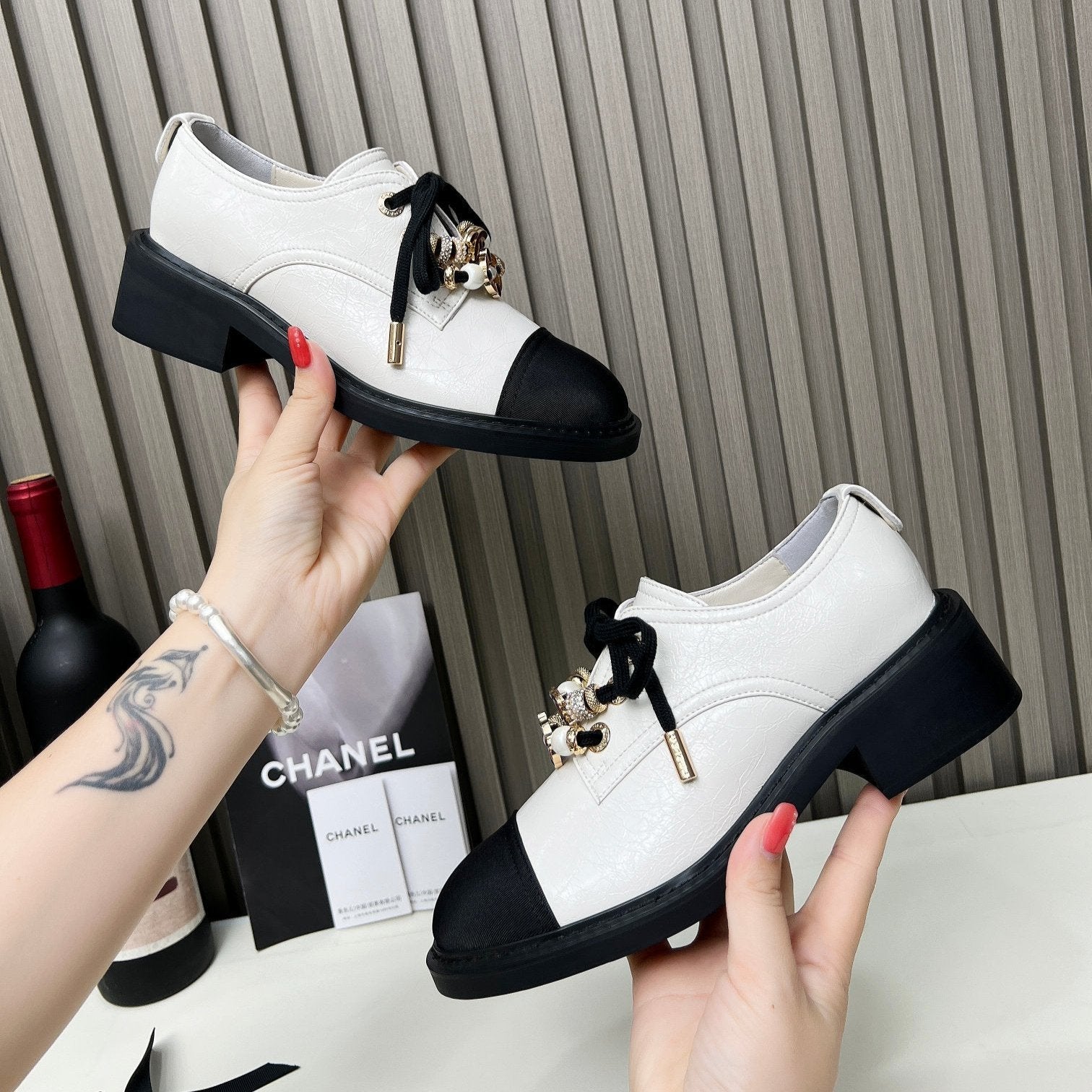 CC Shoe Oxford 50mm In White Black Calfskin And Lycra Fabric 944546