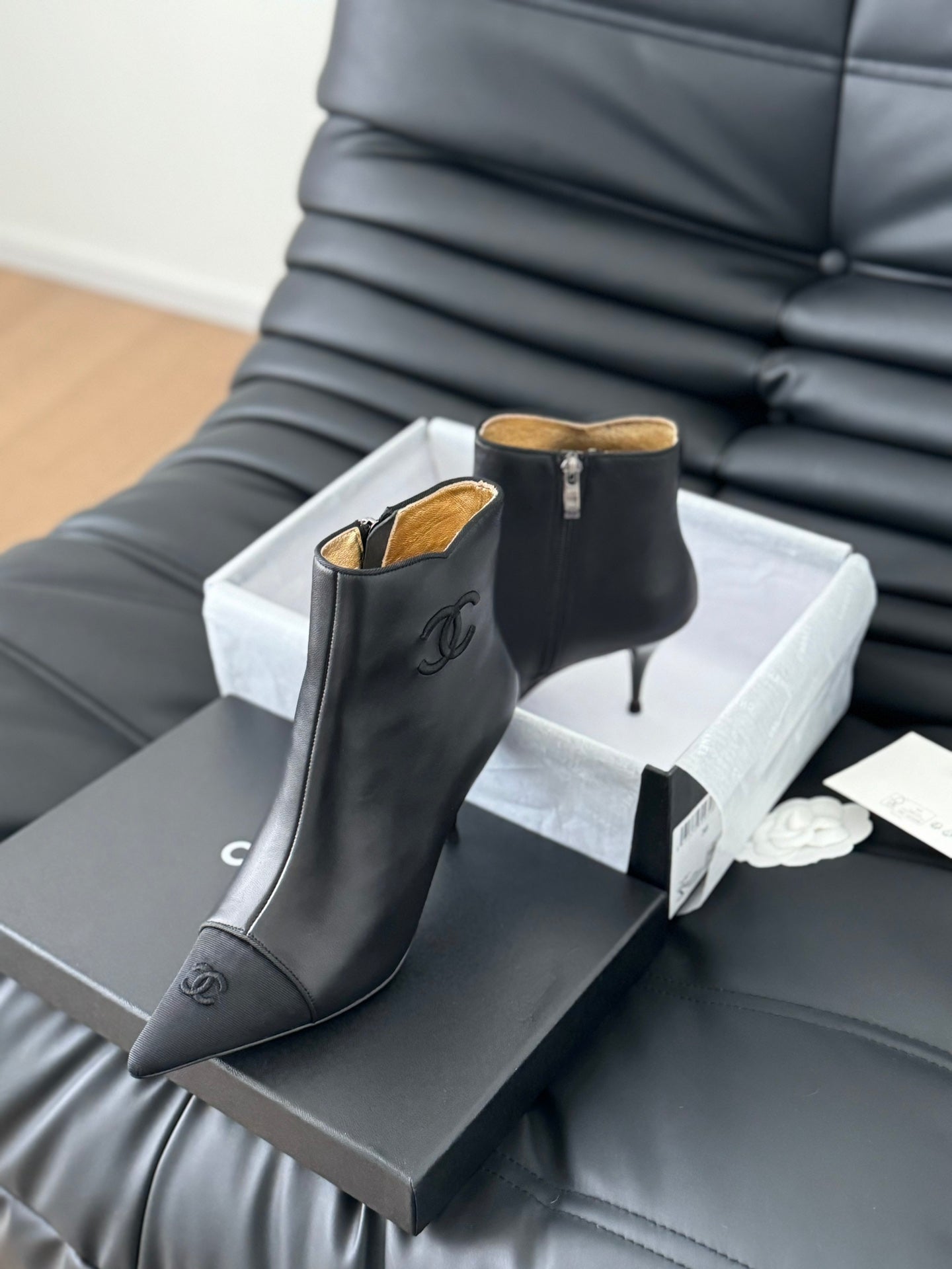 cc short boots 80 heel black calfskin