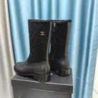 CC Short Boots Black Suede Lining Wool And Lambskin
