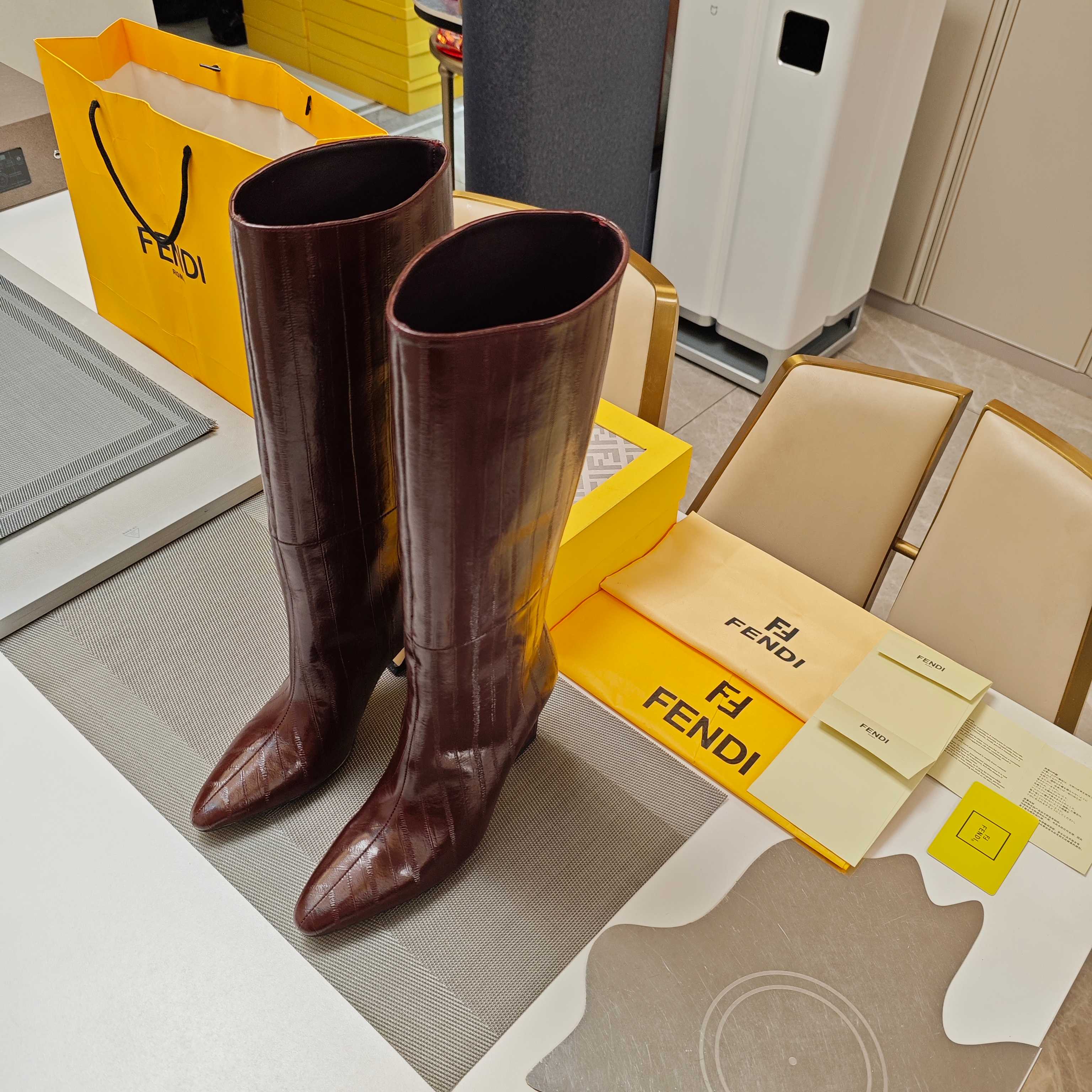 Fendi 25ss high-heeled boots reddish brown sheepskin 502719