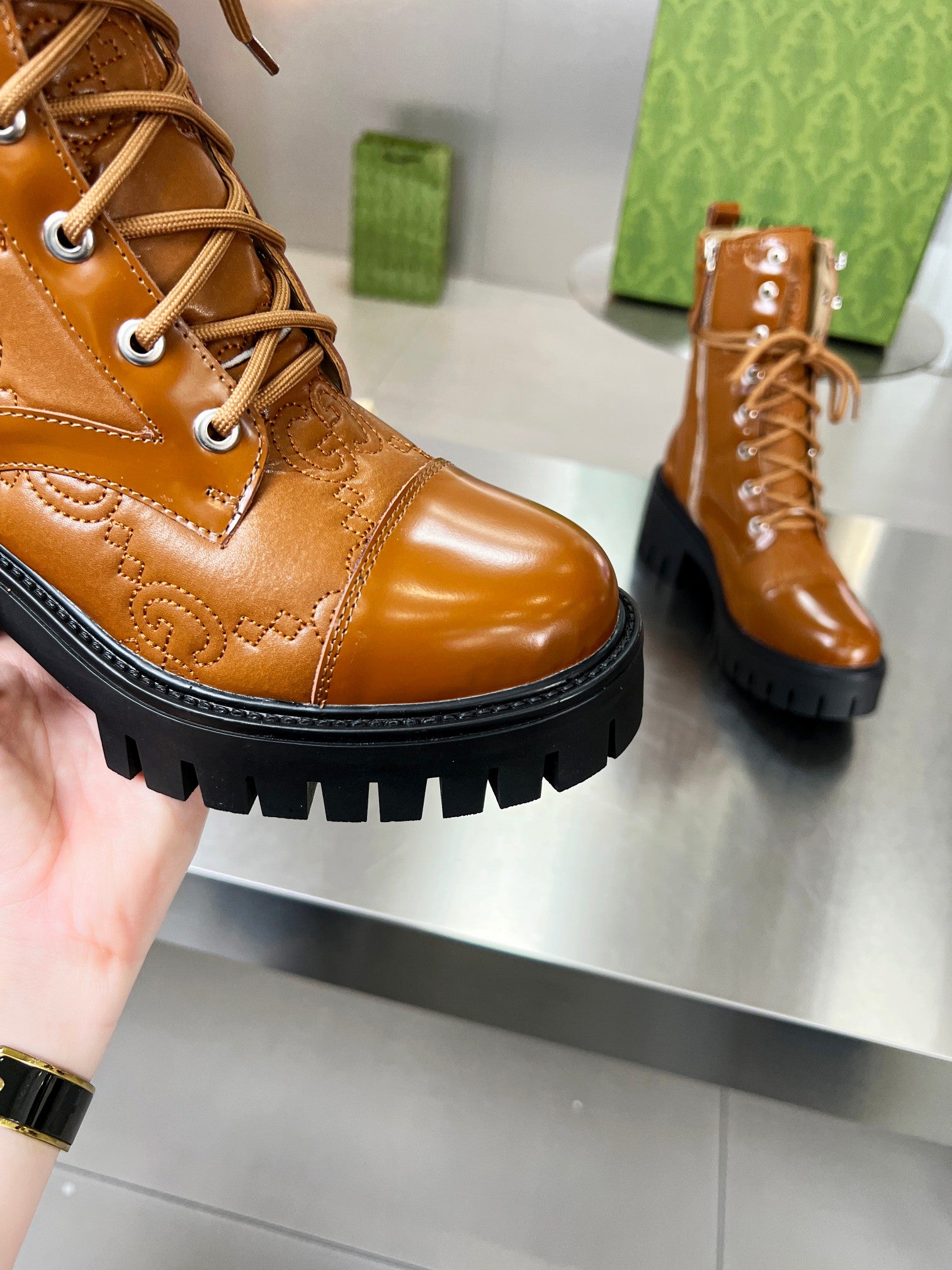 GG ankle boots camel black cowhide 397799