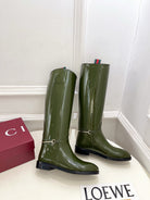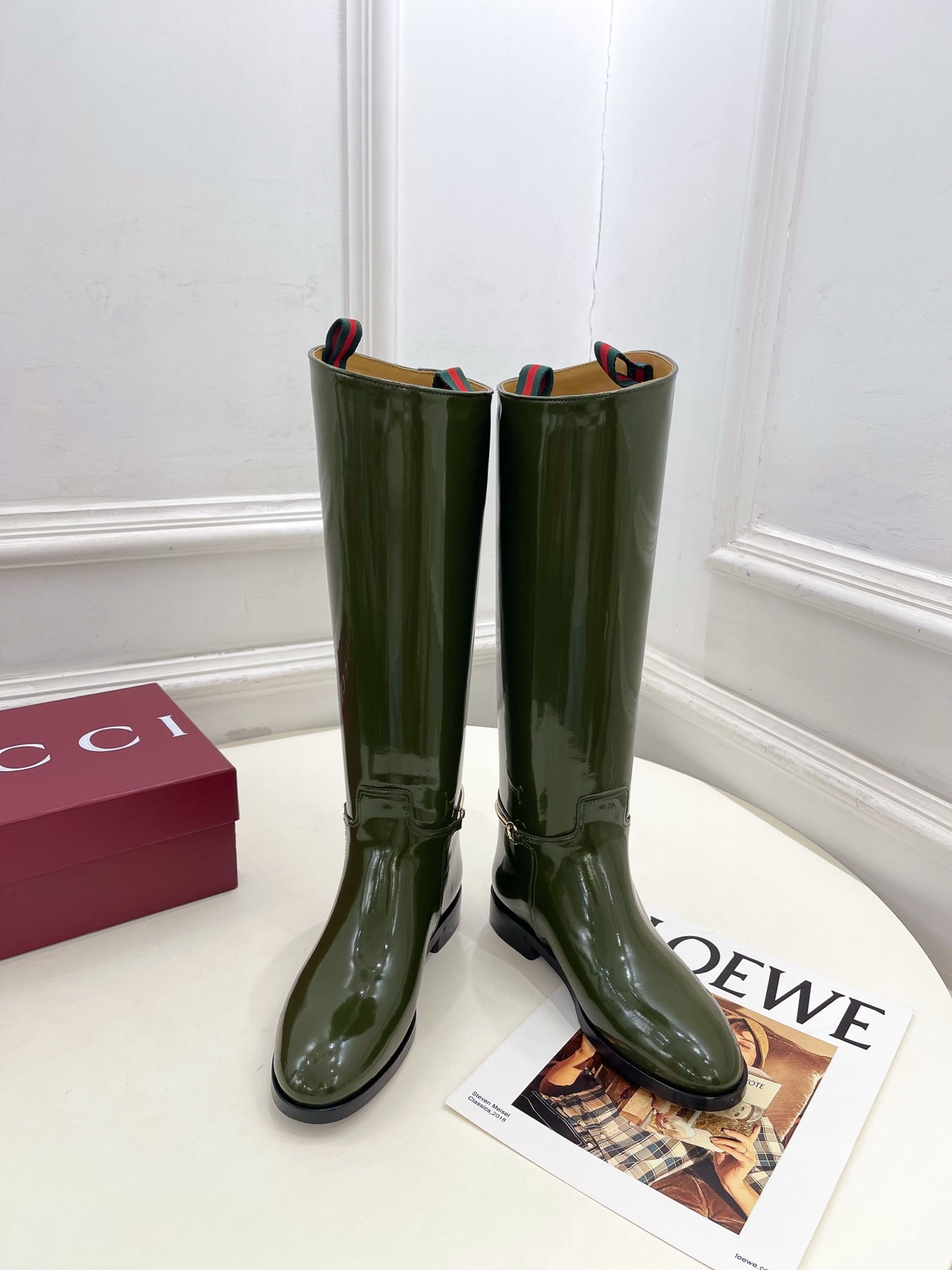 Gucci 25𝐬𝐬 horsebit long boots dark olive green patent calfskin 435383
