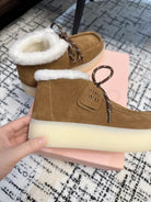 Miu Ankle Boots Cinnamon Brown Fleece Lining Cow Suede