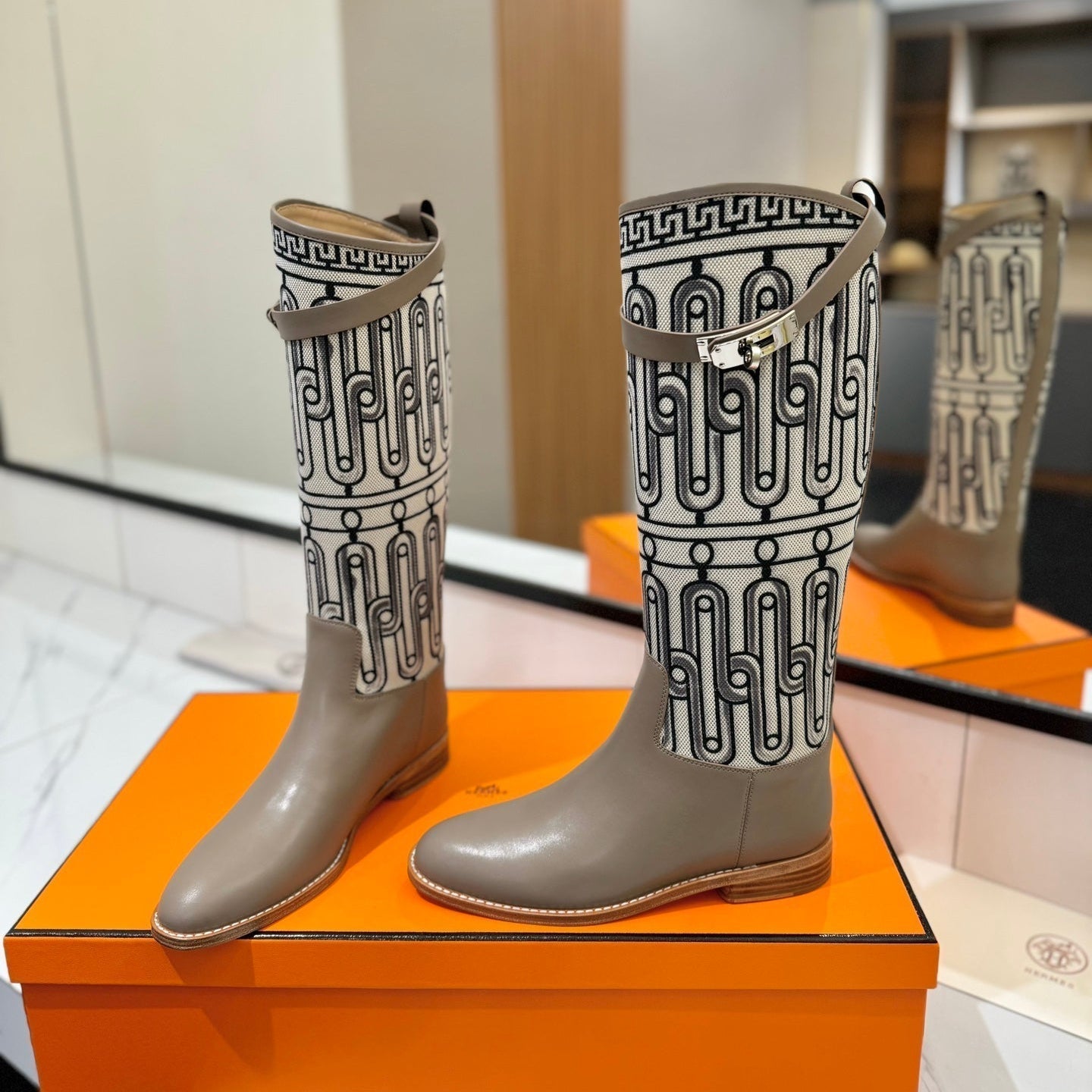 HM Jumping Boot 20MM Grey Beige Printed Pattern Cowhide 992360