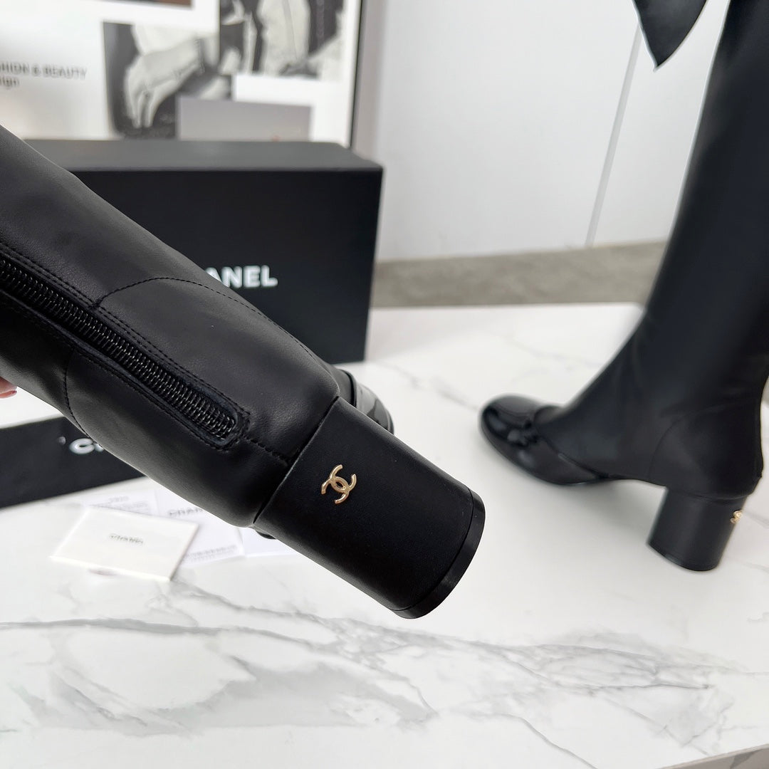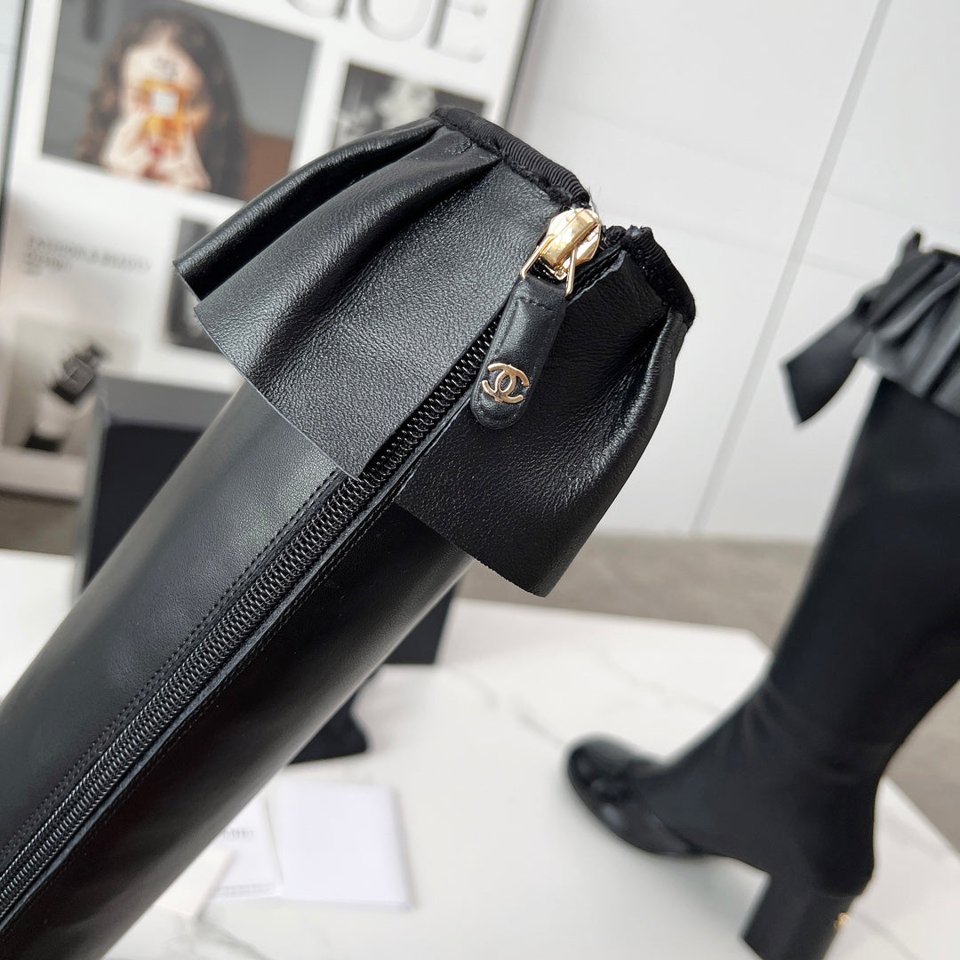 Chanel 25A Winter New Thigh Boots Black Brown Cowhide Mix Suede 393521
