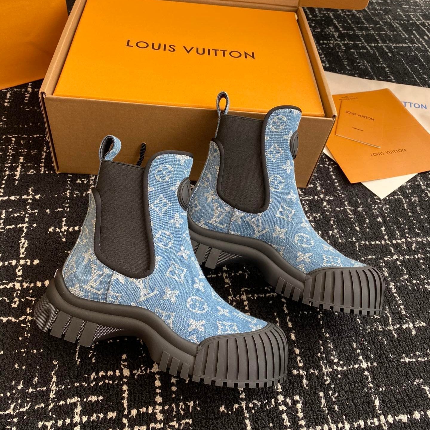 LV Ankle Boots 35mm Light Blue Monogram Jacquard Fabric