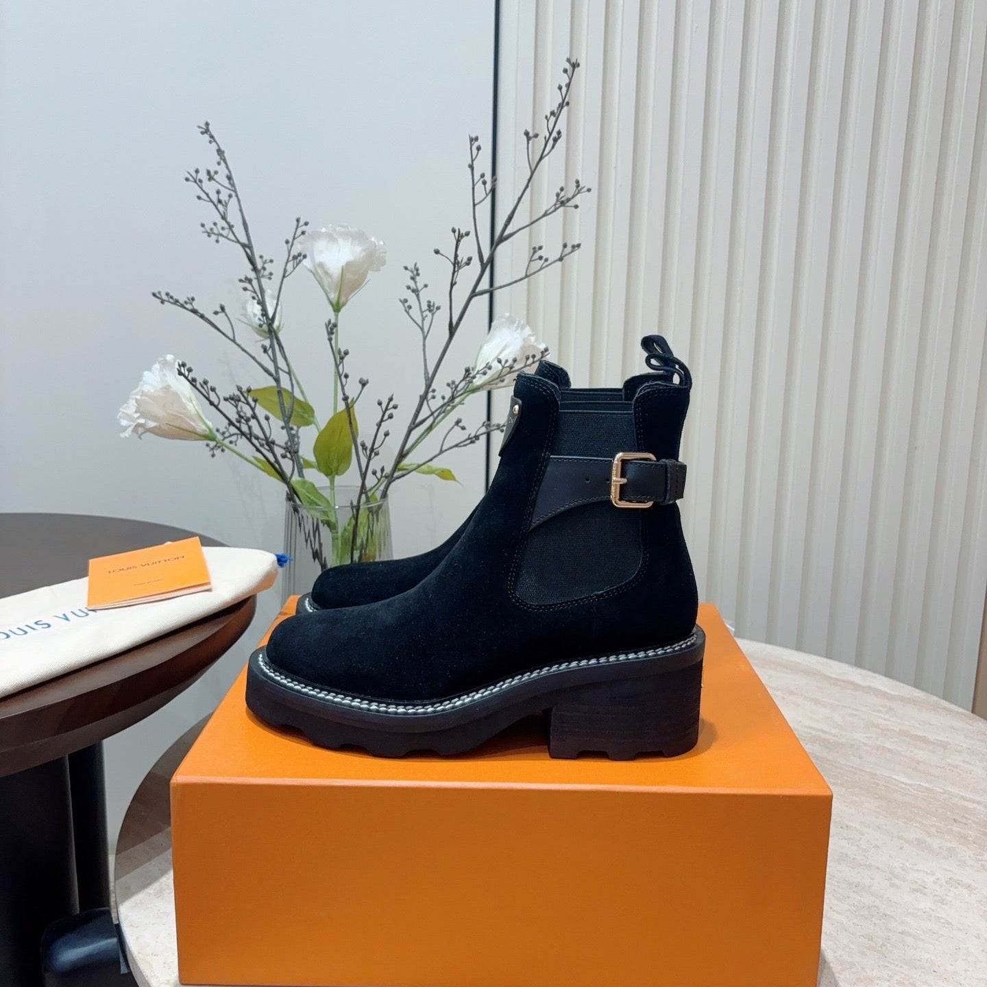 LV Citizen Flat Ranger Boot Plain Black Calfskin