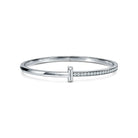 NARROW T1 HINGED BANGLE DIAMOND SILVER