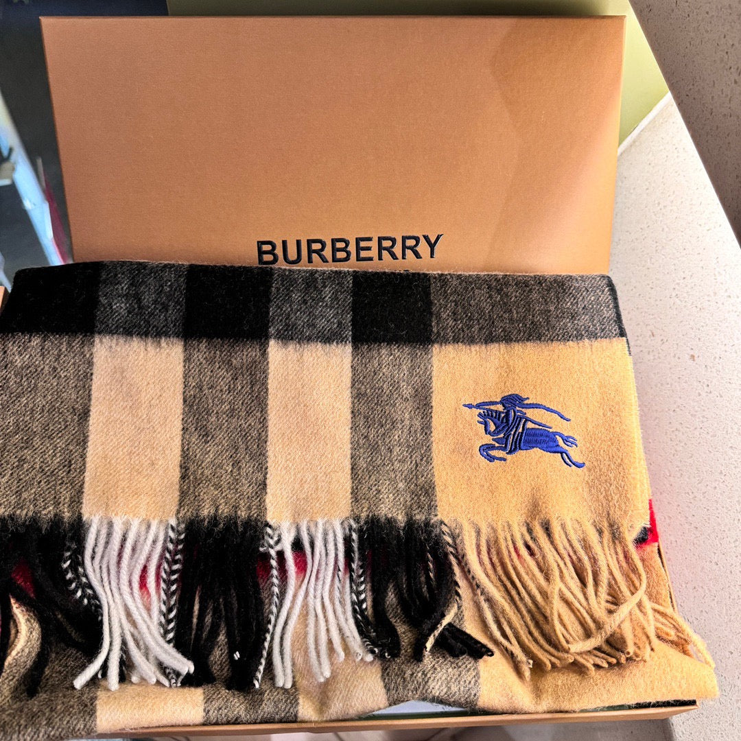 WIDE CHECK CASHMERE SCARF 200 CM IN CAMEL BROWN CASHMERE 407326