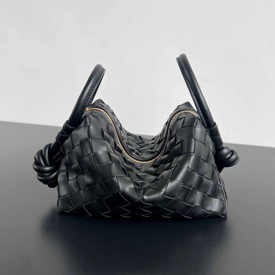 BV Small Cobble Top Handle 23cm Black Lambskin