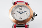 pasha 30mm quartz pink gold white dial red leather