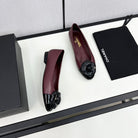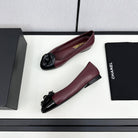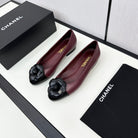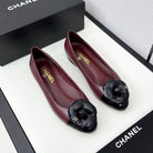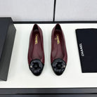 ballet flat flower burgundy calfskin black patent calfskin