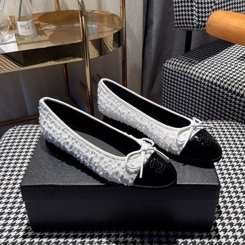 ballet flat white tweed black patent calfskin