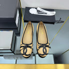 CC 25 Cambon Ballet Flat Beige Black Quilted Calfskin