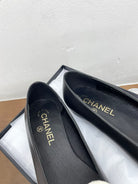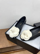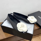 CC Ballet Flats Black With Camellia White Lambskin
