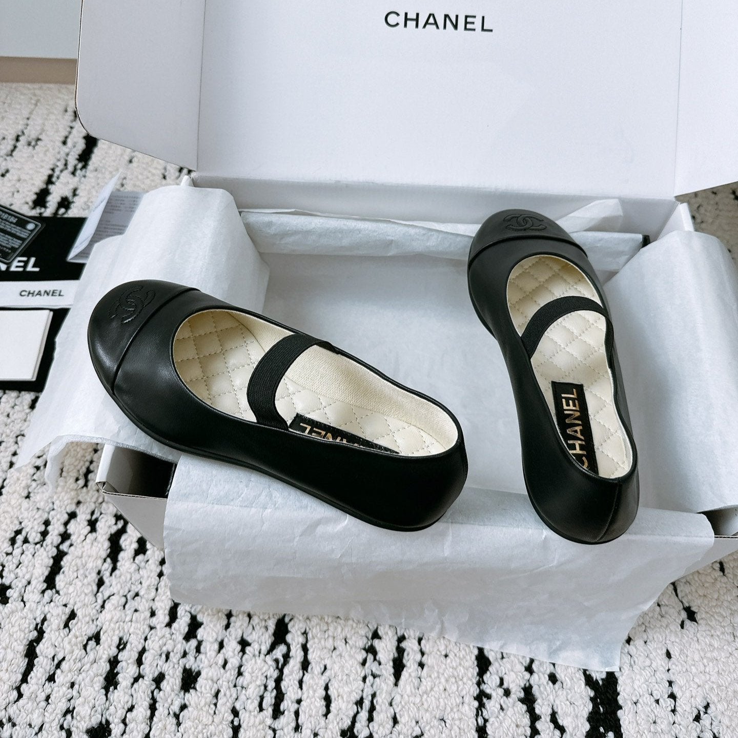 CC Ballet Flats 10mm Beige Black Quilted Lambskin