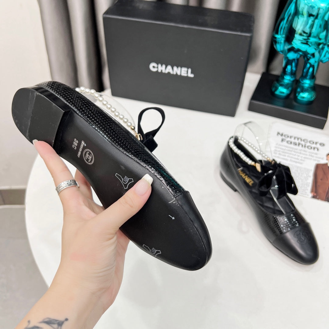 CC Ballet Flats Black With Bow Lambskin