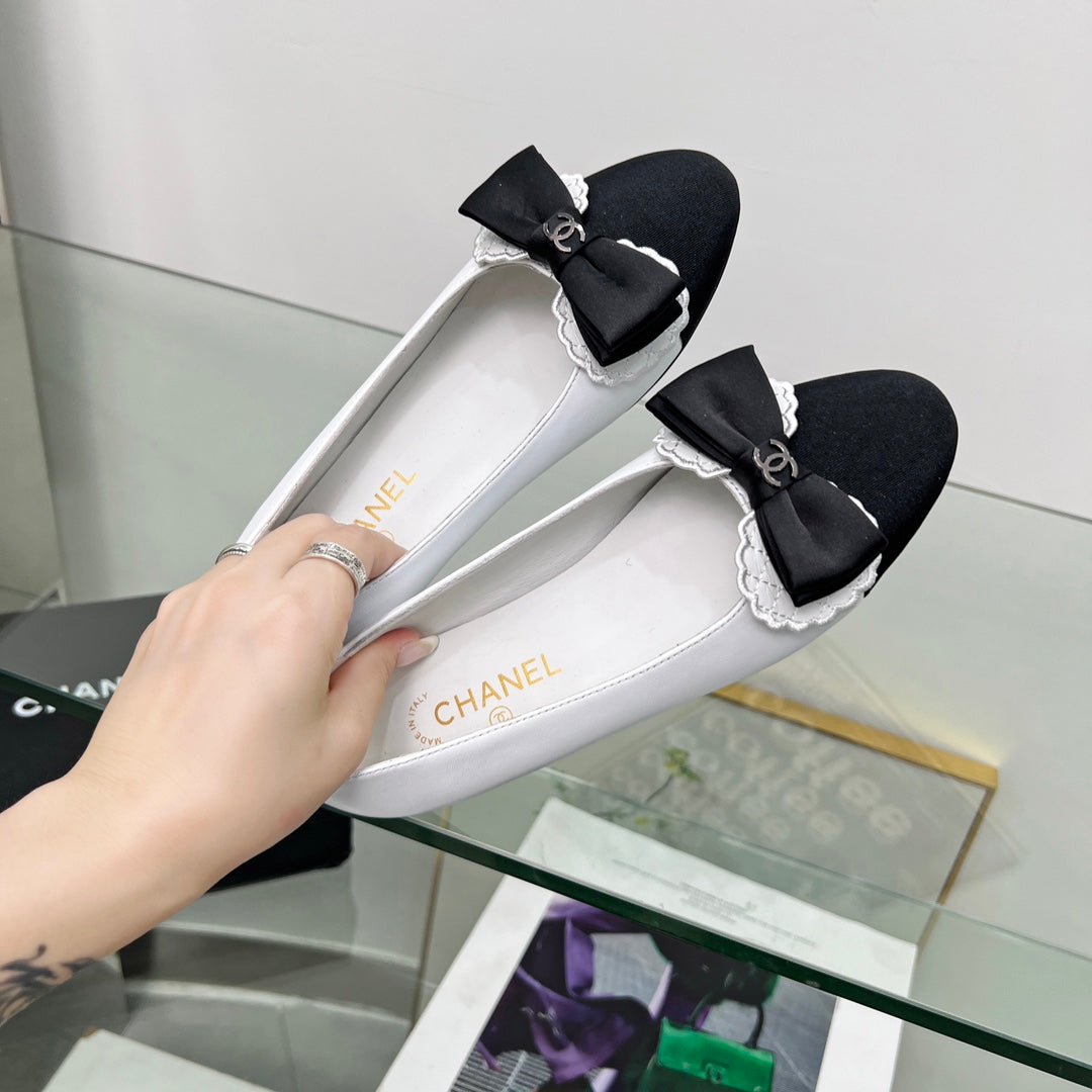 CC Ballet Flats White With Bow Lambskin