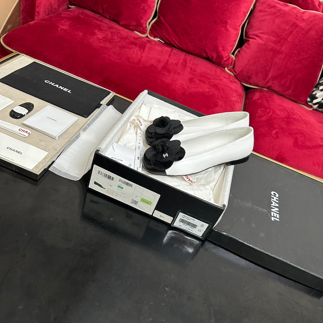 BALLET FLAT BLACK LAMBSKIN WITH WHITE BOW