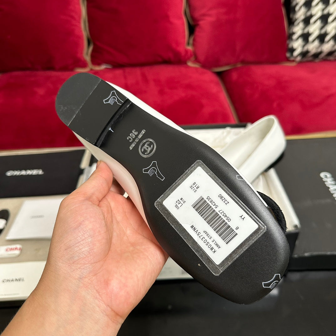 BALLET FLAT WHITE LAMBSKIN WITH BLACK BOW
