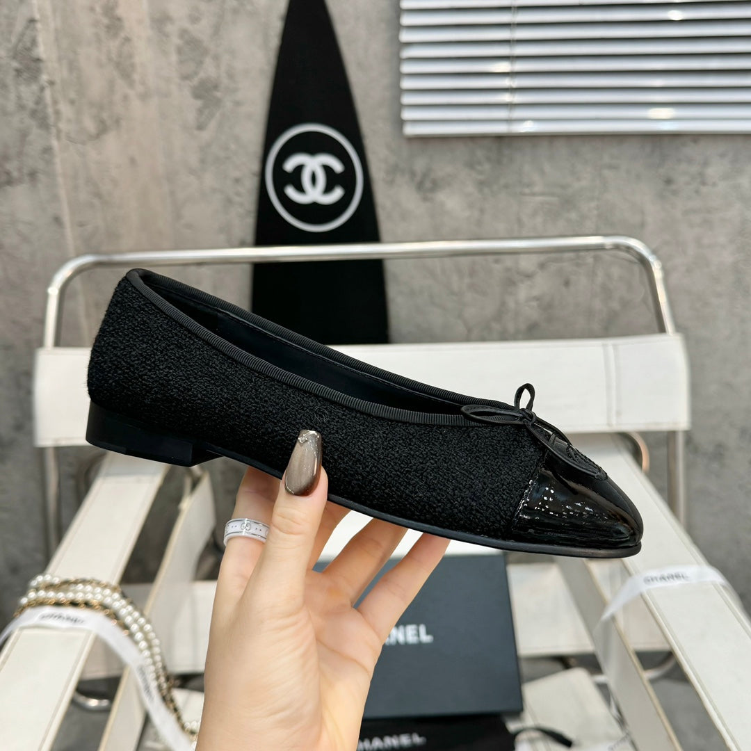 BALLET FLAT BLACK CALFSKIN AND FABRIC