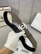 CC WOMEN'S BELT 3.0CM LEATHER DARK GREY BUCKLE SILVER