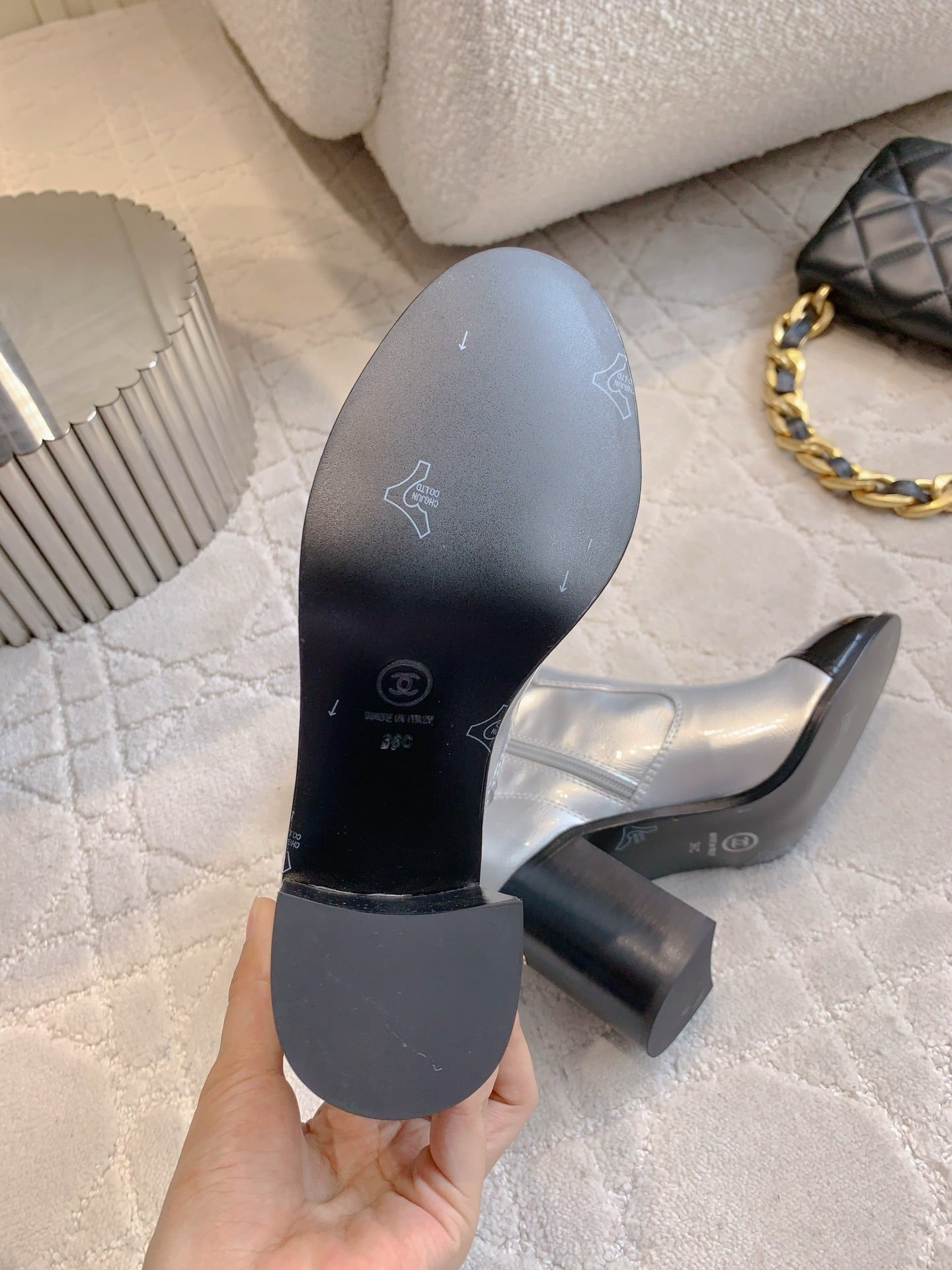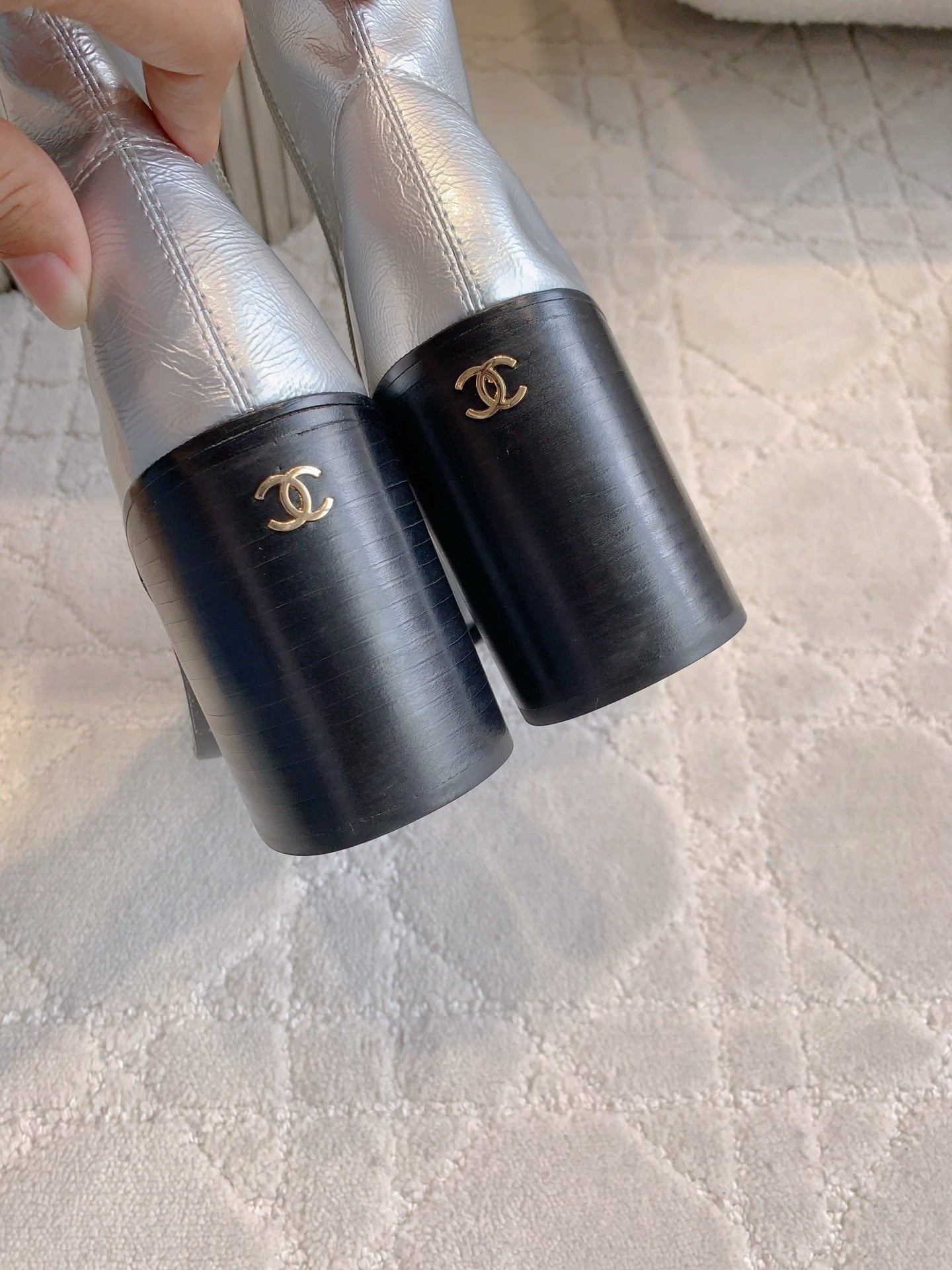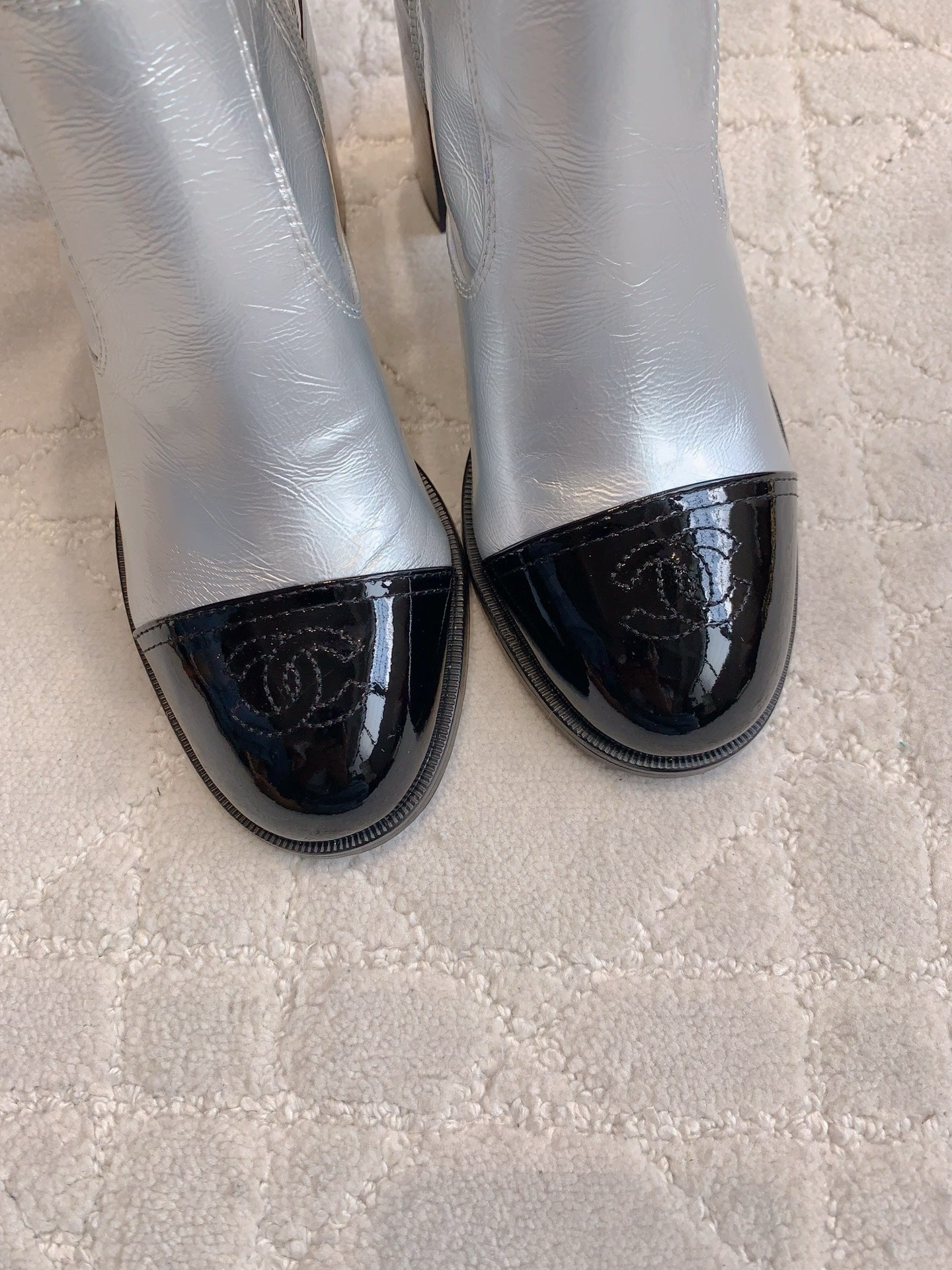 CC 25 Heeled Short Boot Silver mix Black Patent Leather 516676