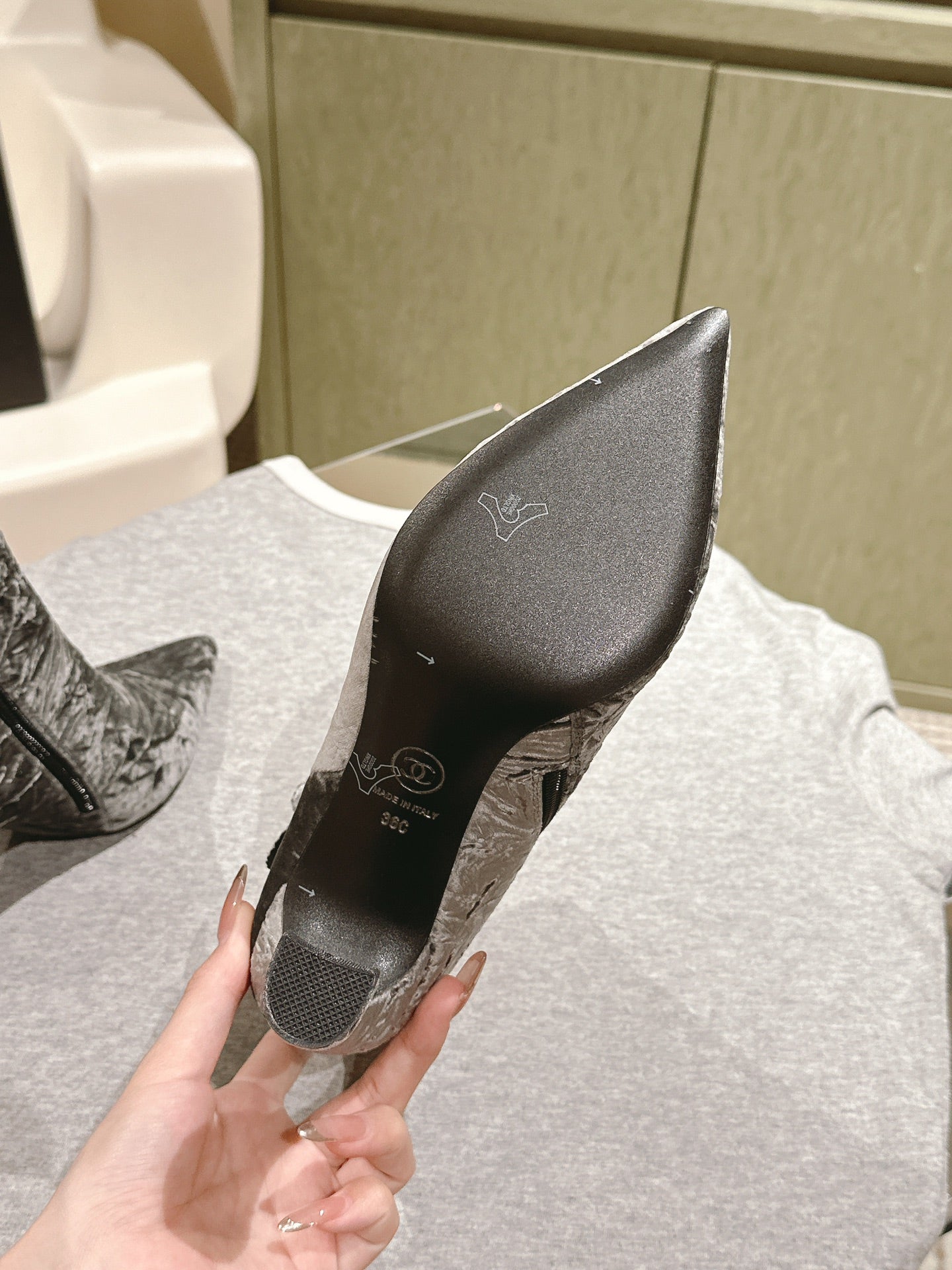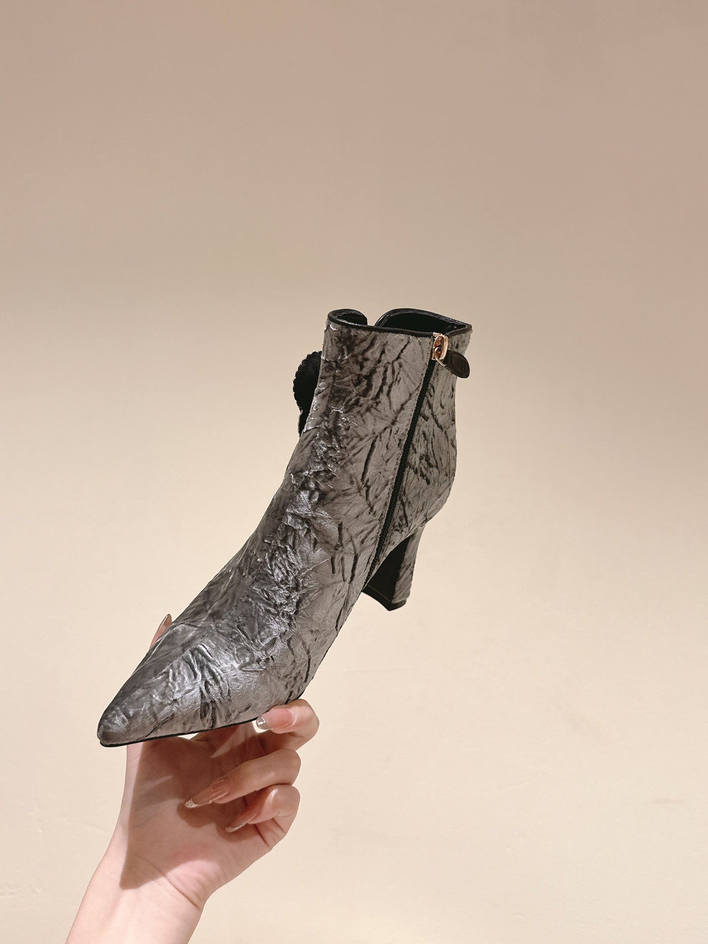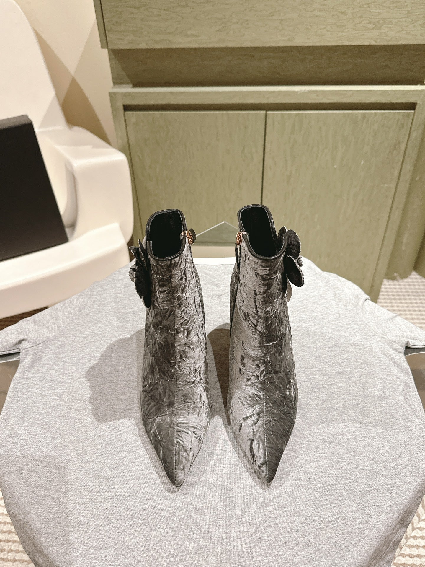 CC Ankle Boots 85mm Silver Rough Velvet Fabric