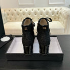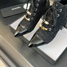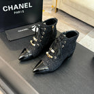CC Ankle Boots Black Beaded Tweed Fabric And Lambskin