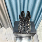 CC Ankle Boots Black Bow Tweed Sequin Beaded Fabric