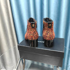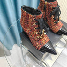 CC Ankle Boots Red Orange Tweed Fabric And Lambskin