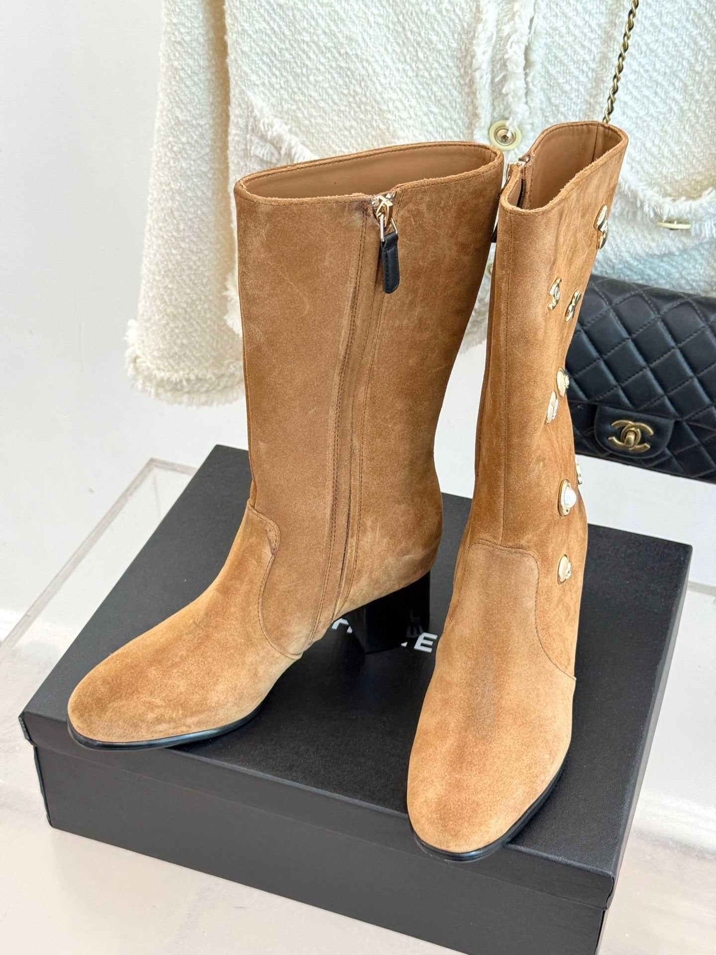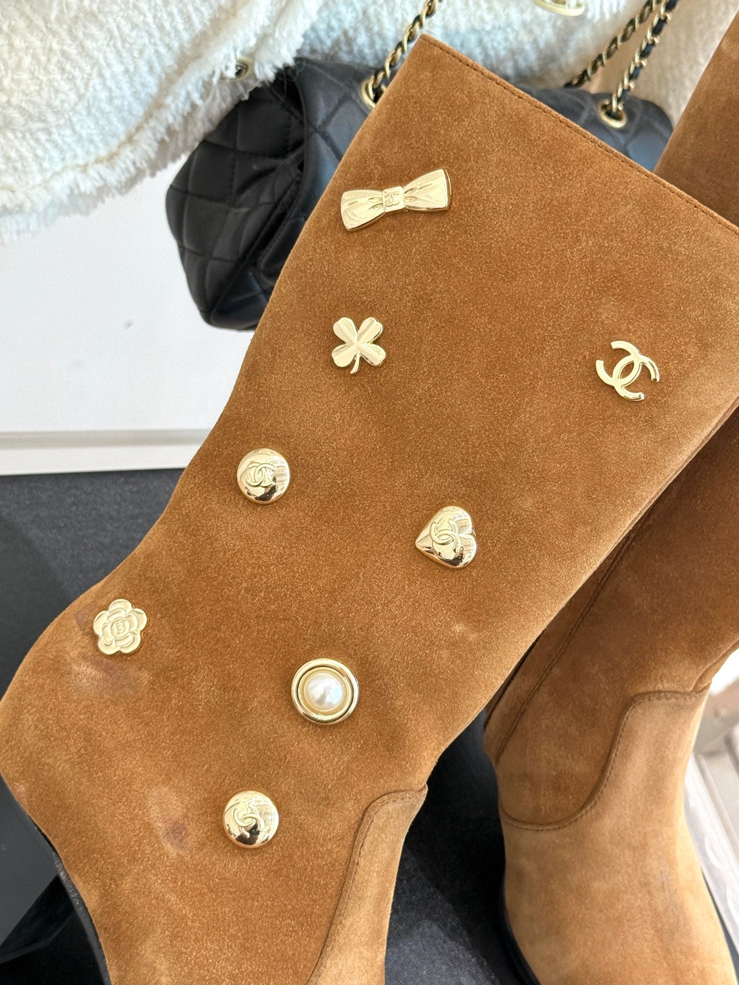 CC High Heel Boots Brown Suede Mix Charm 512037