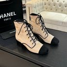 CC LACE-UP SHORT BOOTS IN SEPIA BEIGE MIX BLACK SUEDE