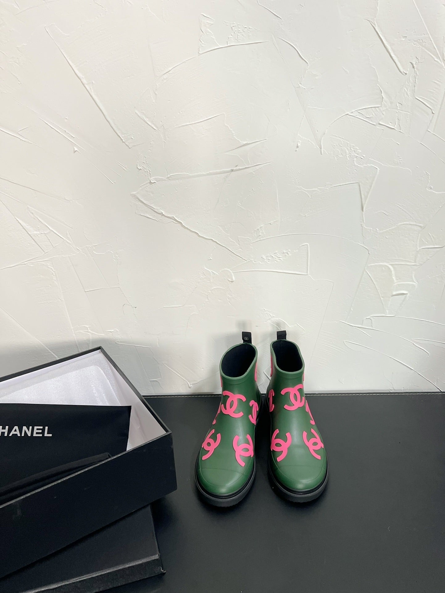CC Rain boots In Green With Pink Logo Natural Rubber 949790