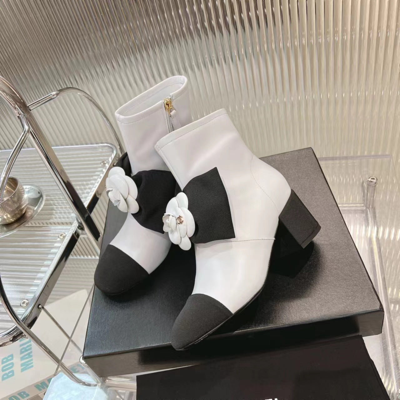 CC Short Boots 60mm White Camellia Cowhide